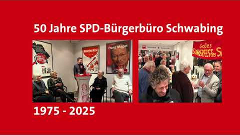 50 Jahre verlässliche Anlaufstelle in Schwabing - Grund genug für ein Fest im SPD-Bürgerbüro in der Belgradstraße mit mehr als 80 Gästen. Seit 1975 ist es Treffpunkt der SPD-Ortsvereine, Sitz der Abgeordneten in Land- und Bundestag, offener Raum für politische Veranstaltungen, Kunstausstellungen und für den Austausch mit Initiativen aus der Schwabinger Bürgerschaft.